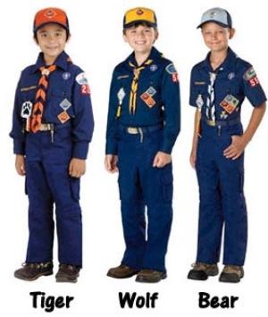 The Lion Uniform- Is different from the traditional scout uniforms. I consists of a lion t-shirt and a hat. Available from the scout shop.